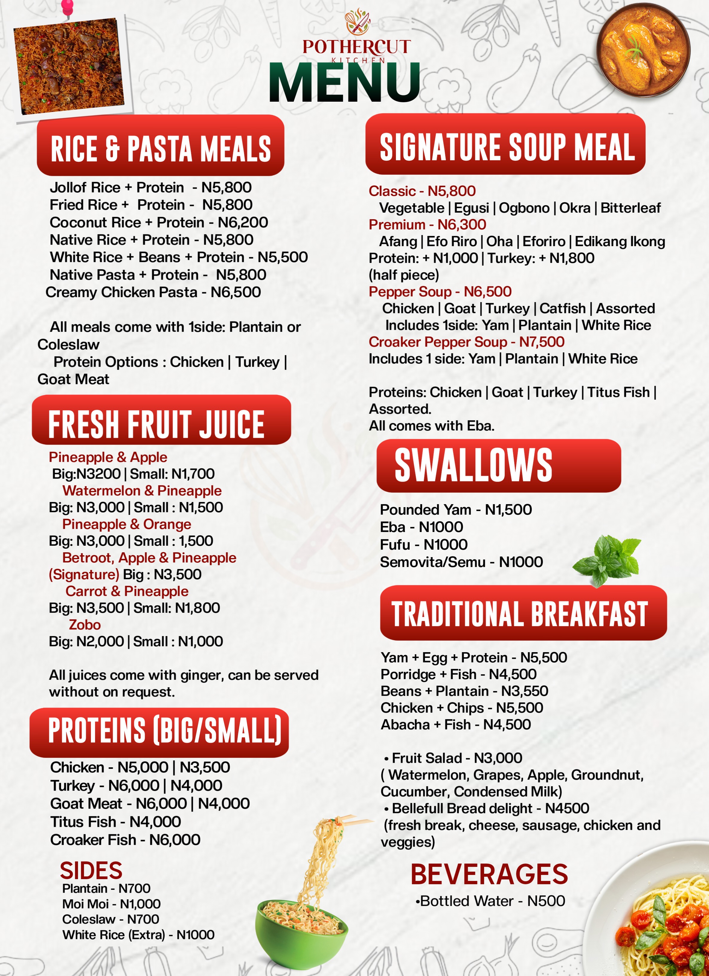 Our commitment to quality ingredients, authentic recipes, and elegant presentation has made us a favorite for events of all sizes. From our signature Jollof rice to our refreshing fresh juices, every dish is prepared with passion and a modern twist. Give us the honor of serving you, and taste the difference.